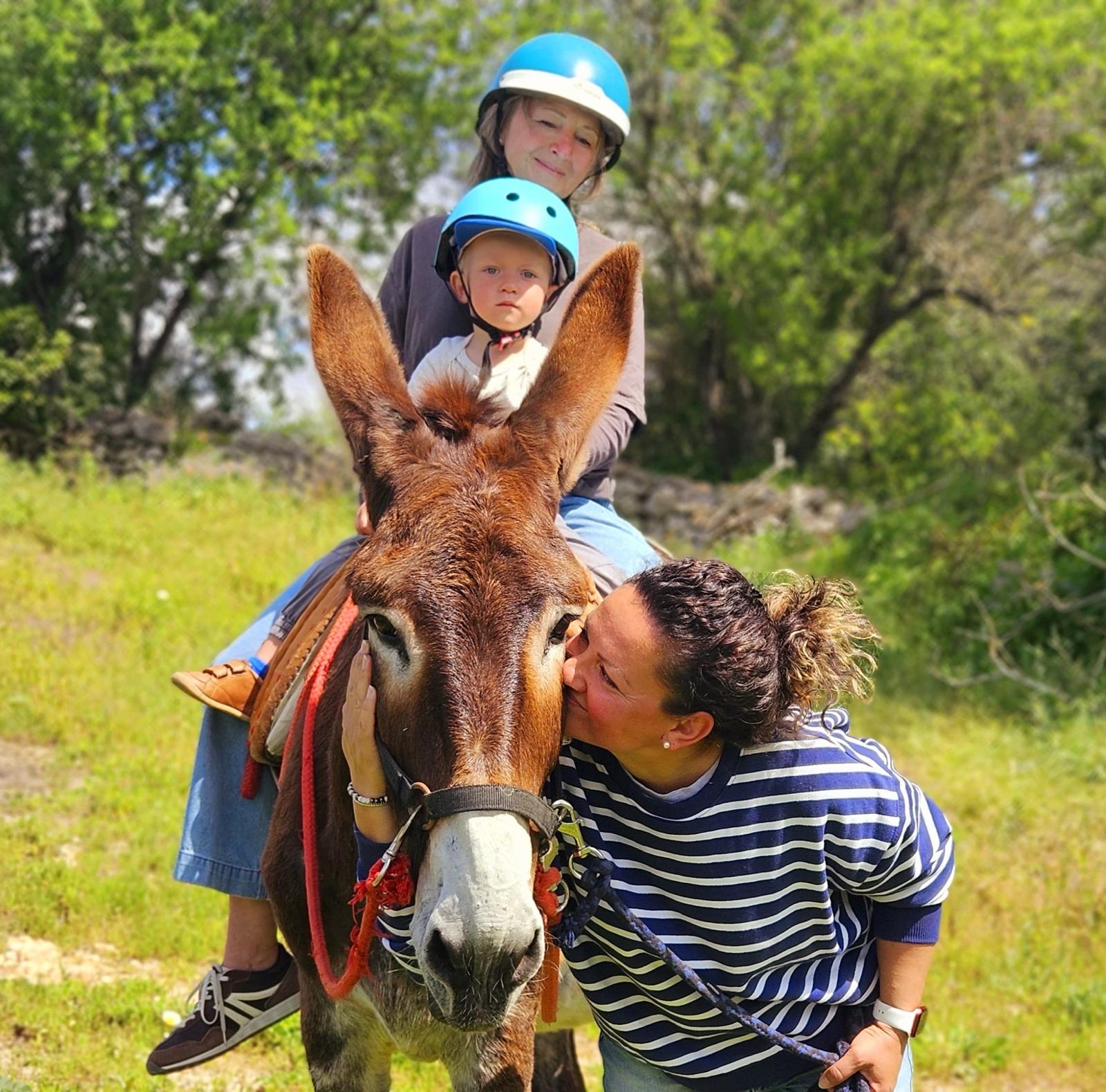 Nous proposons des balades à dos d’âne ainsi que des randonnées accompagnées avec des ânes.